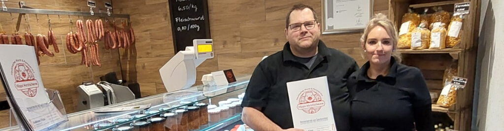 Hier gibt’s hausgemachte Wurst- und Fleischspezialitäten – die Schweine kommen regional aus Burgholz vom Emmerich, alles wird direkt vor Ort verarbeitet.